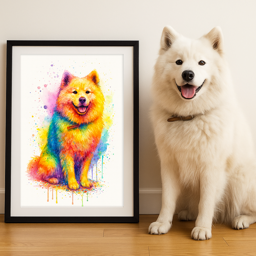 Celebrate your furry friend with a splash style beautiful pet portrait print, created just for you with your pet photo.